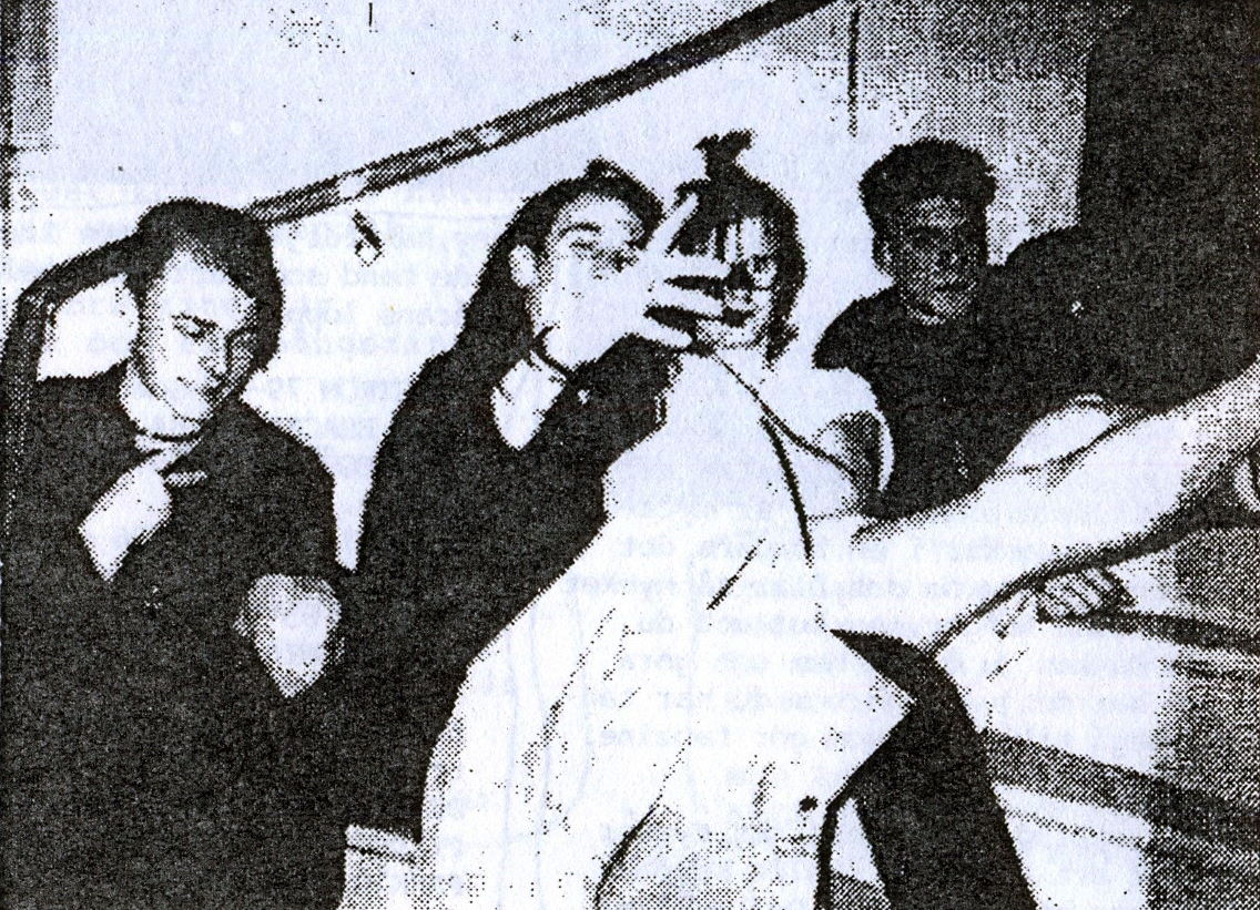 Punk är punk och kommer nog alltid att vara det… men jag har en kompis som har en blå liten väska som det står heavy metal på… jag har för mej att det står Alice Cooper på den oxå… men han är snäll för det mesta… för han hjälper mig att skriva mitt oseriösa zine KONSÄÄRV… Mental Härdsmälta har funnits i ca 2 å 1/2 år. (sen november -90) Men vi har skiftat lite medlemmar sen starten. Det är bara jag och Rille som va med från starten, sen kom Stefan… sist Tompa. (2 kilo bananer är inte så jävla mycket om man tänker på att skalen är ganska tunga)