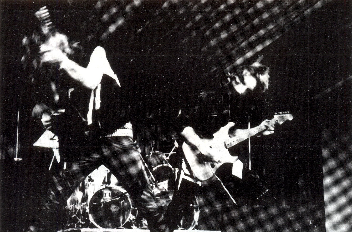 — Nej, det var meningen när vi startade att vi skulle spela andras låtar som vi gillade. Men under tiden vi höll på att ta ut låtar började vi förstå hur dom ”riktiga” gjorde och så började vi få till egna grejer. Och när vi väl hade fått ihop ett helt band hade vi egna grejer att köra på. Efter tre veckor hade vi vår första konsert. Vi hade tre låtar, en tolva och två egna. Så ville publiken ha extranummer och vi blev tvungna att ta om en av låtarna.