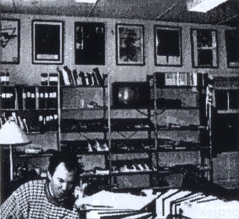 Annars är det en alldeles vanlig bolagsmiljö jag kommit till. Lagom oreda, urdruckna cola-burkar, tomma CD-fodral och gamla kaffemuggar lite var stans. Skivlagret på hyllorna är i ordning enligt alfabetets regler.