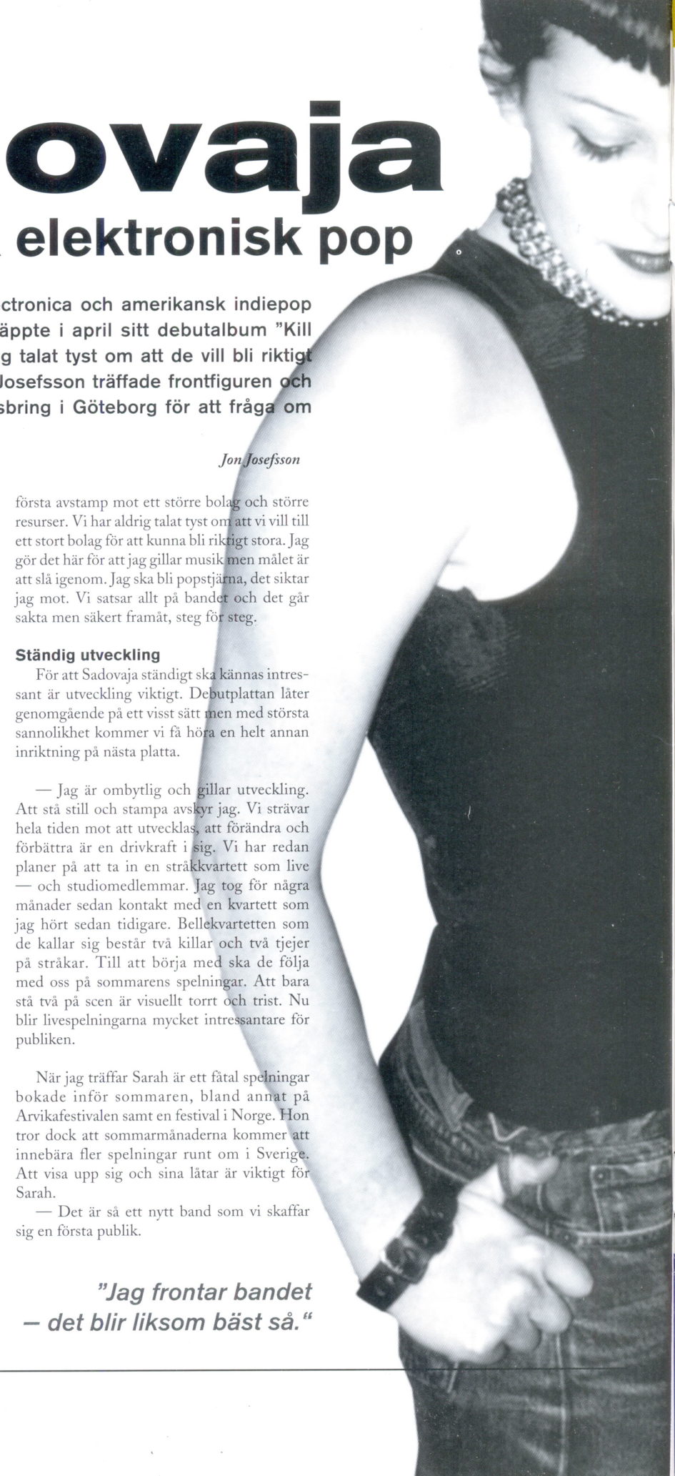 Med sin blandning av brittisk electronica och amerikansk indiepop visar Sadovaja upp sig. Duon släppte i april sitt debutalbum ”Kill Your Darlings”. Gruppen har aldrig talat tyst om att de vill bli riktigt stora och slå igenom. Zeros Jon Josefsson träffade frontfiguren och sångerskan i gruppen, Sarah Assbring i Göteborg för att fråga om drömmen om att bli popstjärna.